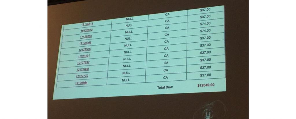 Information security researcher Droogie registered the licence plate NULL thinking the plate would allow his car to be invisible to the system. Instead, he got assigned $12,000 worth of traffic tickets that had been NULL data for the licence plate field!