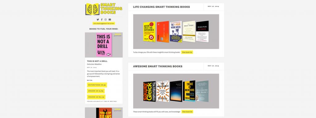 Thi sweek I launched a new website called SmartThinkBooks.com. The aim of the site is to shine a spotlight on books that can fuel your mind! Many smart thinking books have changed the way I look at the world for the better, so I started this site to help spread the word. Please consider subscribing to our newsletter to get the latest posts direct to your inbox.