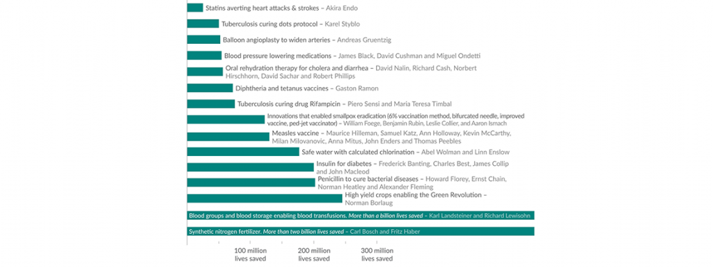 Our World In Data published a graph showing the scientific advancements and discoveries that are estimated to have saved the most lives, along with the scientists responsible for each advancement.