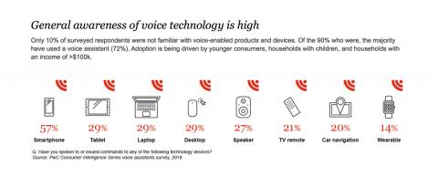 PWC have released a report on the current proliferation and uptake of voice assistants and voice recognition technology among consumers. "Usage will increase but consistency must improve for wider adoption".