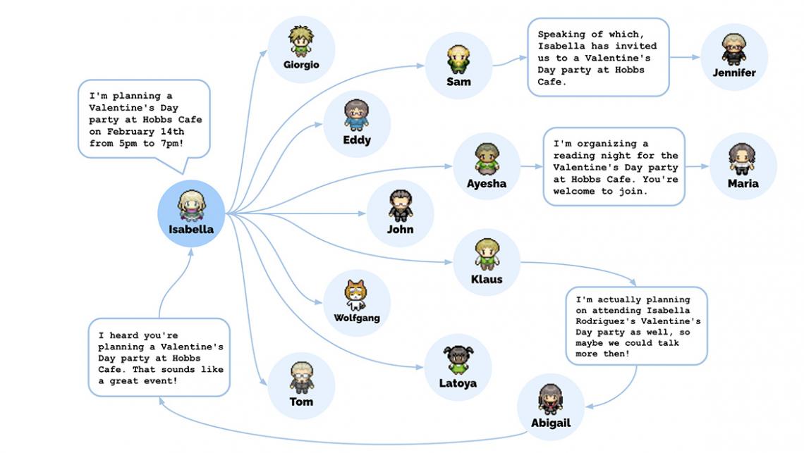 Researchers at Stanford and Google created a human behaviour simulation with AI agents designed to simulate daily life. When left to run, the simulation agents organised a valentine's day party among themselves, in a better manner than the human evaluator control group.