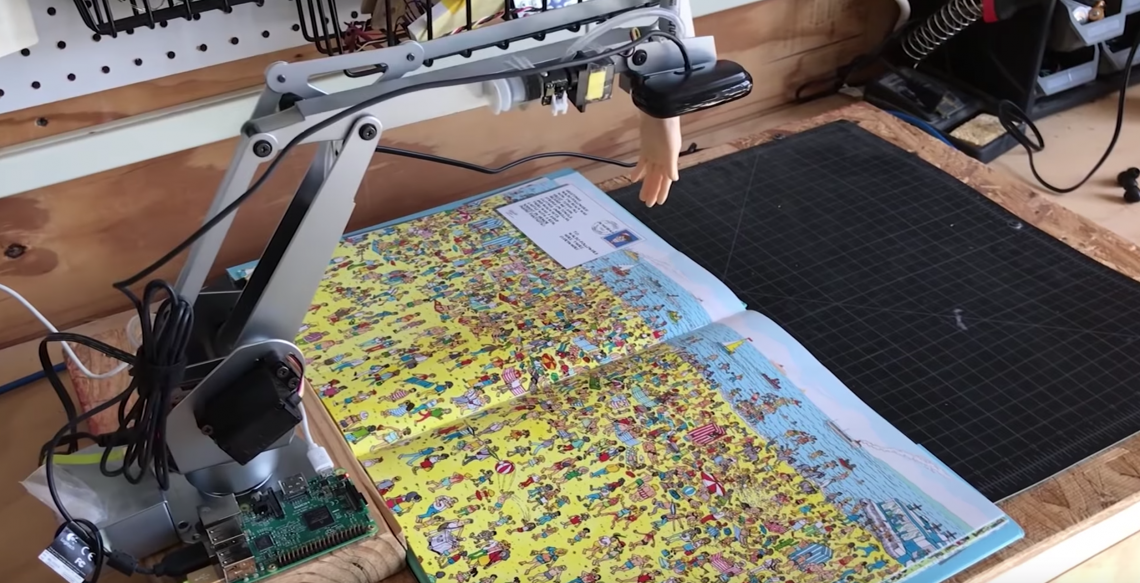 U.S. creative agency RedPepper has built a Raspberry Pi powered robot arm with AI image recognition which can successfully find Waldo. The system uses OpenCV to extract the faces from the image and Google Auto ML Vision cloud service to match the faces to Waldo model. No word as of yet on whether Waldo's British older brother Wally has escaped the robot overlords :-p