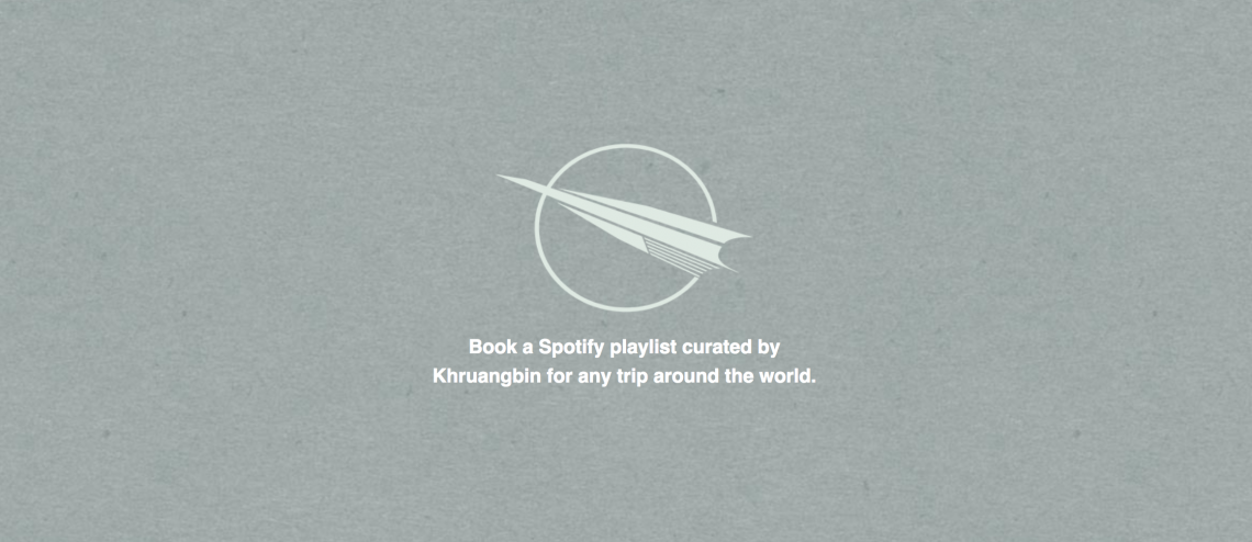 The band Khruangbin have created a site called Air Khruang which allows users that are taking a flight to enter their source and destination airports and receive a generated playlist of music for their flight.