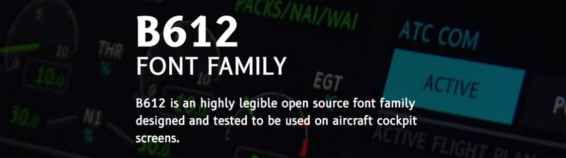 The B612 font is a result of research conducted by Airbus and ENAC and Université de Toulouse III which aimed to improve legibility and comfort of reading on cockpit screens with hinting on all characters.