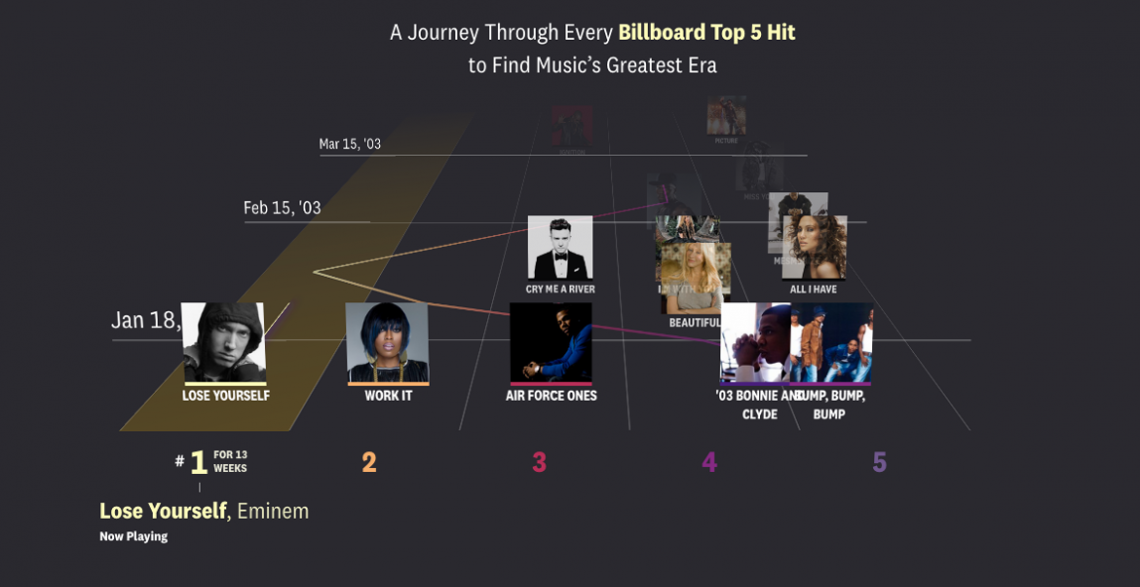 Enjoy hours of entertainment by listening to this cool music player that plays through every Billboard number 1 song for the amount of weeks each song was in the top spot.