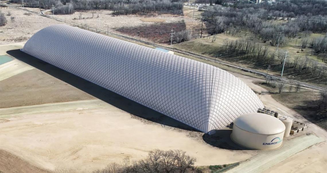 Italian company Energy Dome has partnered with Google to roll out more of their dome CO2 batteries. The system uses excess energy to liquify CO2 to store energy, and release it by converting the liquid back into gas and turning a turbine in the process.