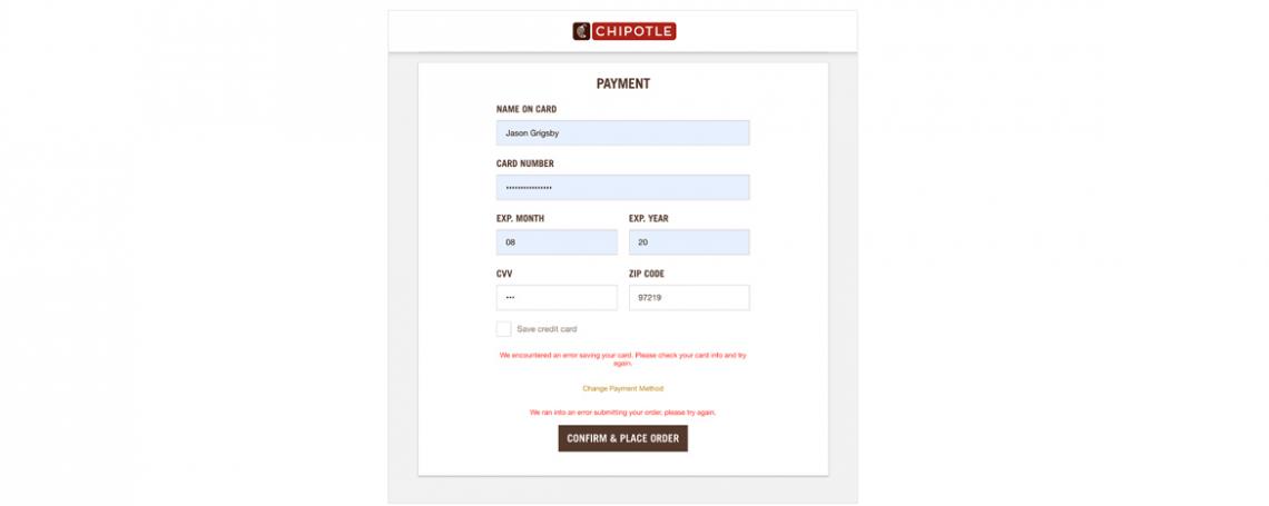 Jason Grigsby on Cloudfour posted an interesting article about how an misconfigured UI mask which caused the browser autofill of credit card details to fail on the Chipotle payment form, possibly costing them $4.4M in lost sales.