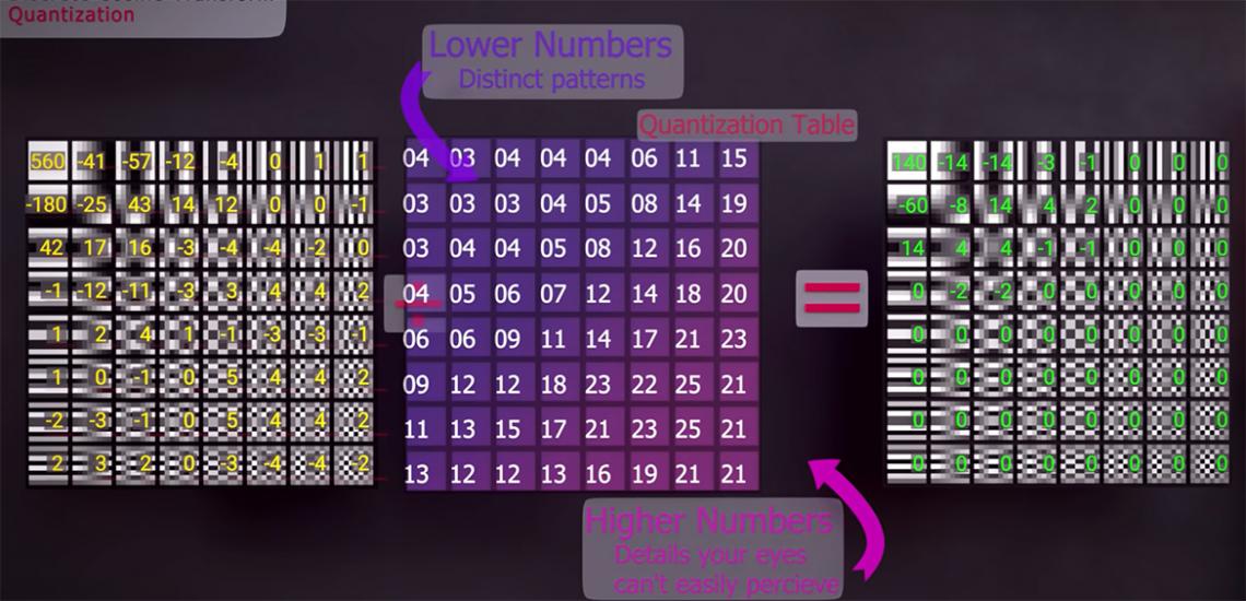In this informative video, Branch Education describes how each step in the JPEG image compression algorithm works, showing how large images can be compressed to much smaller file sizes with little perceivable loss.