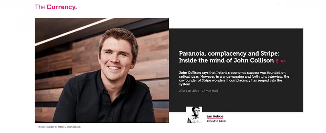 The Currency published an interesting interview with Stripe co-founder John Collison, in which he talks about how Ireland has become complacent in national priority planning and economically strategic decision-making. It makes for refreshing reading, given the government wasted a surplus budget on buying people's votes rather than tackling any big problems this week.