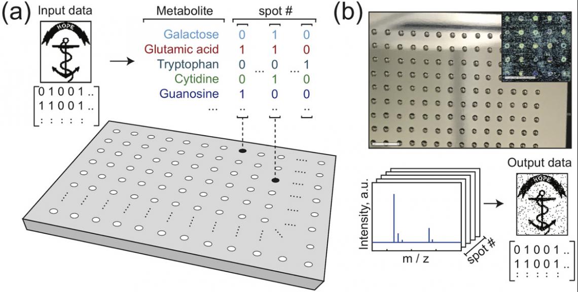 Researchers at Brown University have demonstrated a system to store information in metabolomes, arrays of liquid mixtures containing sugars, amino acids and other molecules. The team successfully encoded a 2KB file image file.