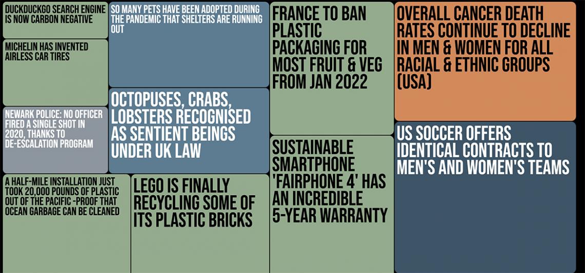 Information Is Beautiful put together a great list of the best good news stories from 2021!