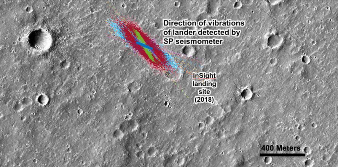 Two vibration sensors on NASA's InSight Mars Lander captured a recording of vibrations caused by wind on the red planet, blowing 10 to 15 mph. This video has raised the sound of the wind by 2 octaves to make it more audible.